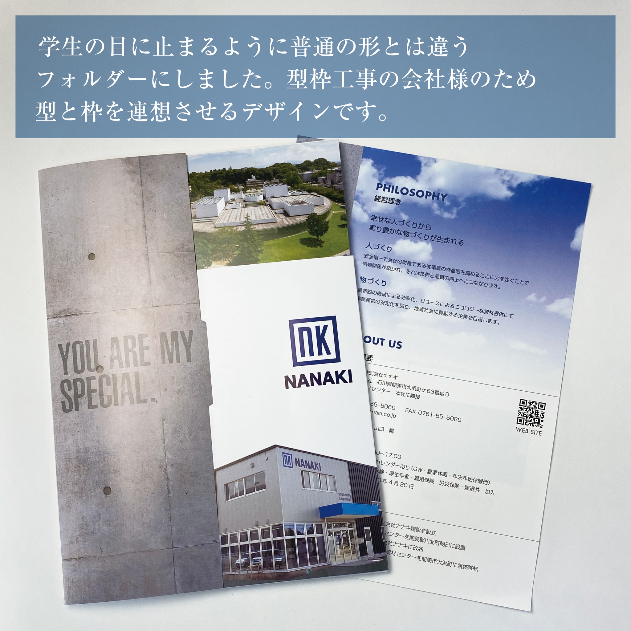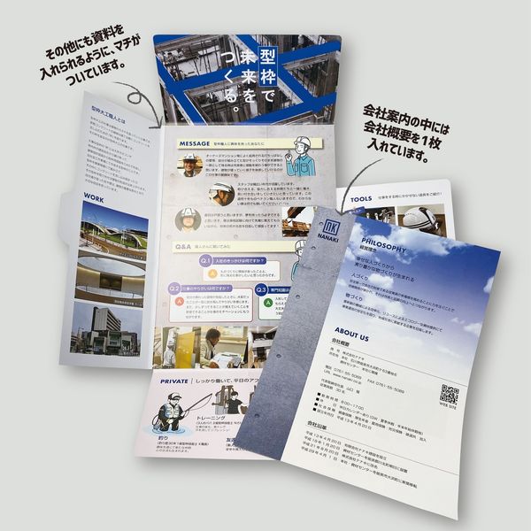 「他の会社と並べられても恥ずかしくなく、学生の目に止まって、興味を持ってもらえるような案内を作りたい」というご相談をいただき、形からご提案させていただきました💡👂